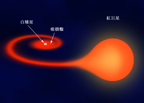 通 常 是 雙 星 , 物 質 會 由 一 顆 子 星 轉 移 至 另 一 顆 子 星 ,