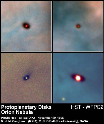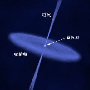 原 恆 星 的 理 論 模 型 顯 示 它 們 會 有 吸 積 盤 和 噴 流 , 這 些 噴 流 不 會 長 久 存 在 , 只 維 持 約 十 萬 年 左 右 , 假 若 氣 體 和 塵 埃 把 新 生 恆 星 完 全 覆 蓋 , 我 們 便 看 不 到 中 心 的 恆 星 , 而 只 能 看 到 噴 流 在 兩 邊 所 造 成 的 雲 團 。