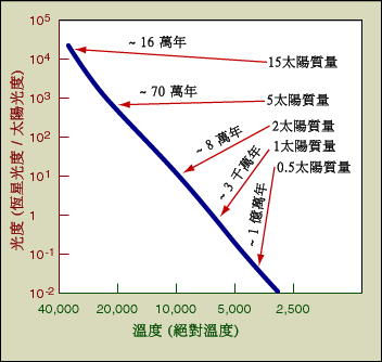 的 恆 星 , 由 於 它 們 的 核 反 應 速 率 很 快 , 大 約 一 百 萬 年