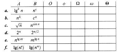 > 0, and c > 1 are constants. Your answer should be in the form of the table with "yes" or "no" written in each box.