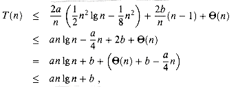 which is tight to within a constant factor. This bound is not strong enough to solve the recurrence as T(n) = O(n lg n), however. Specifically, we need a bound of