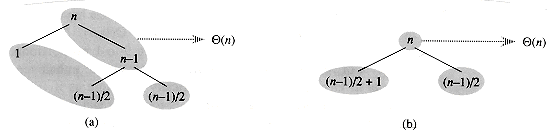 (n). Certainly, this situation is no worse than that in Figure 8. 5 (b), namely a single level of partitioning that produces two subarrays of sizes (n - 1)/2 + 1 and (n - 1)/2 at a cost of n =
