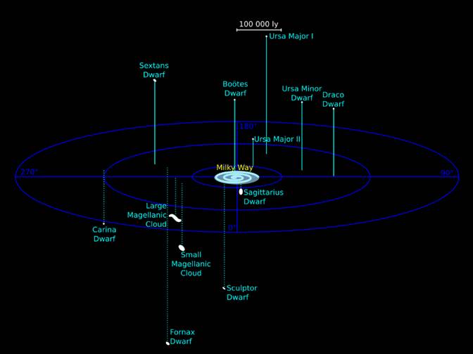 288、银河系大约有多少个卫星星系?( ) (A)2 (B)10 (C)30 (D)60 解析:卫星星系是指绕着较大的主星系(如银河系)运行的较小的星系。这些卫星星系通常被银河系的引力束缚,围绕银河系运行。近年来,天文学家发现在银河系的420kpc(140万光年)范围内,有61个小星系在绕着银河系的轨道上。这些卫星星系中,肉眼可见的只有大、小麦哲伦星云。在轨道上的星系中,最大的是人马座矮椭球星系,其直径为2.6kpc(8500光年),或者大约是银河系的1/20。随着观测技术的进步,这些卫星星系数量还会增加。